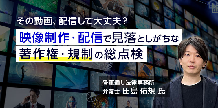 そこで、メディア・エンターテイメント業界のクライアントに対する法務サポートを中心に扱う「骨董通り法律事務所」の田島弁護士をお迎えし、動画制作・配信に携わるうえで、「知っておくべき著作権・規制に関するポイント」を解説いただきました。