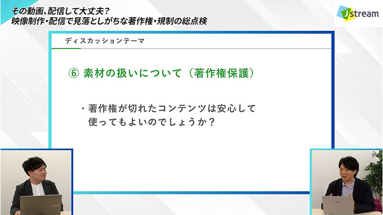 篠原: 続いて、素材の扱いについてです。著作権の保護期間が切れたコンテンツは、安心して使ってよいものなのでしょうか。
