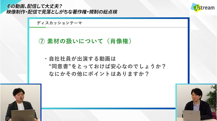 篠原: 続いては、社員の肖像権についてです。自社社員が動画に出演する際には、同意書のようなものを取っておけば、半永久的に使ってもよいのでしょうか。